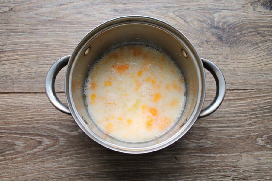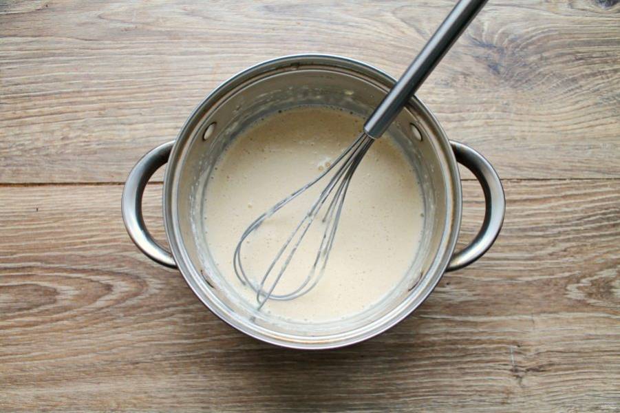Разбейте в молоко яйца и перемешайте до однородности.