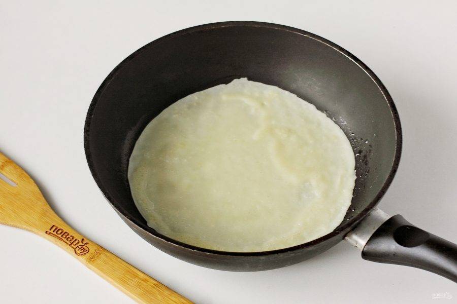 Выпекайте блины на хорошо разогретой сковороде смазанной растительным маслом.