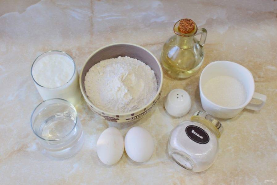 Для приготовления блинчиков подготовьте необходимые ингредиенты.
