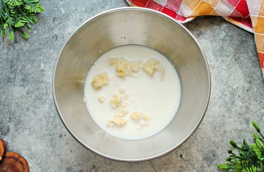 Раскрошите свежие дрожжи и перемешайте до растворения.