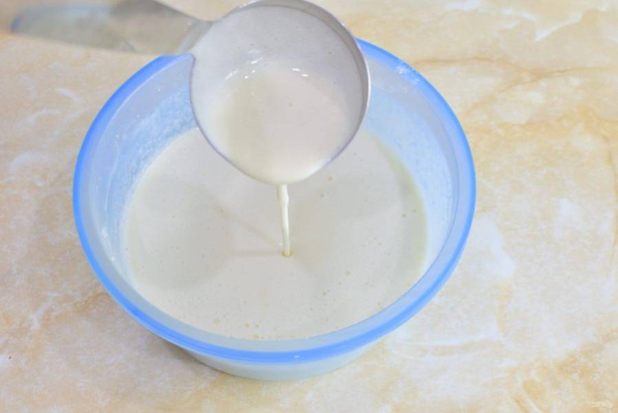 Готовое блинное тесто будет достаточно жидкое. Именно из такого получатся тонкие блинчики. Чем гуще тесто, тем толще будут готовые блинчики. Отрегулируйте густоту теста под свой вкус.