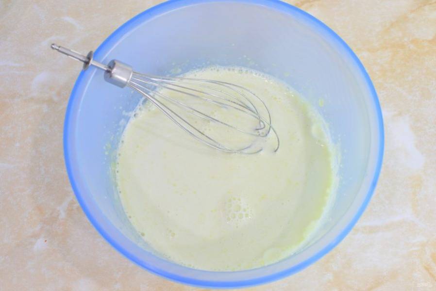 Желтки соедините с сахаром, солью и растительным маслом. Влейте сливки и все перемешайте.