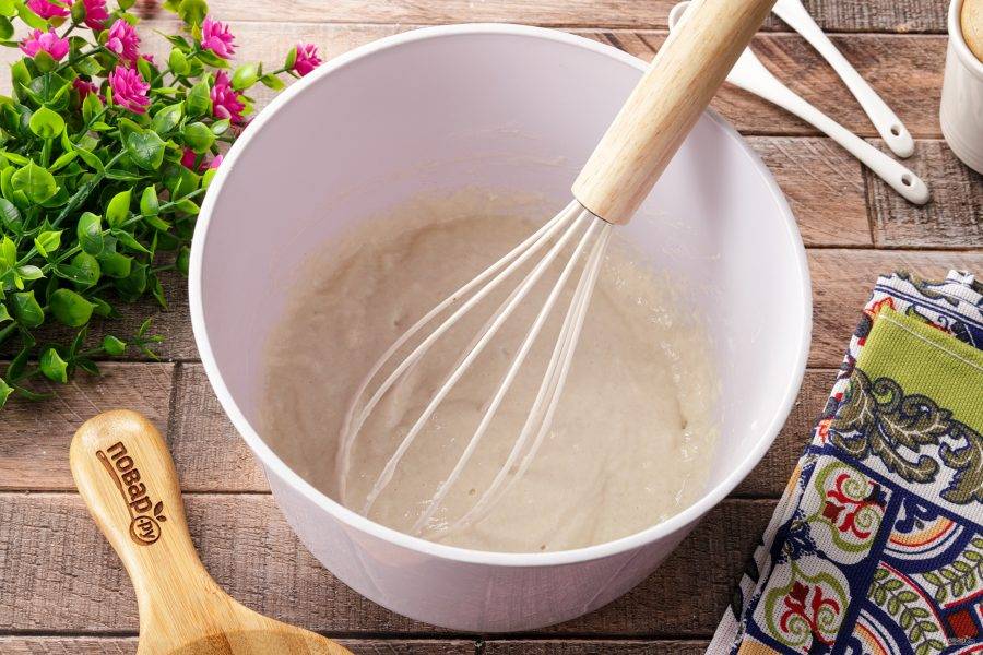 Если консистенция теста вас устраивает, добавьте растительное масло и перемешайте всё ещё раз.
