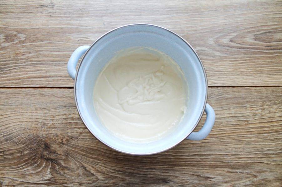 Просейте в сыворотку муку и замесите густое однородное тесто.