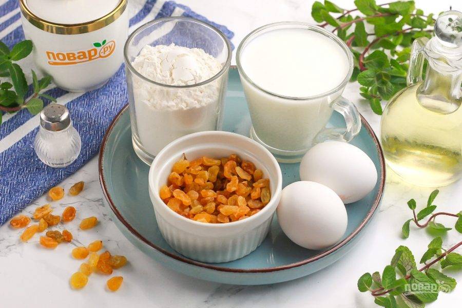 Удивите ваших любимых блинами с изюмом — румяная выпечка не только вкусная, но и полезная. Для того, чтобы начинка не получилась жестковатой, обязательно запаривайте изюм заранее.