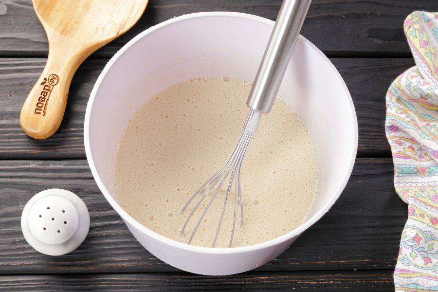 Перемешайте всё ещё раз. Дайте тесту постоять, а тем временем приготовим начинку.