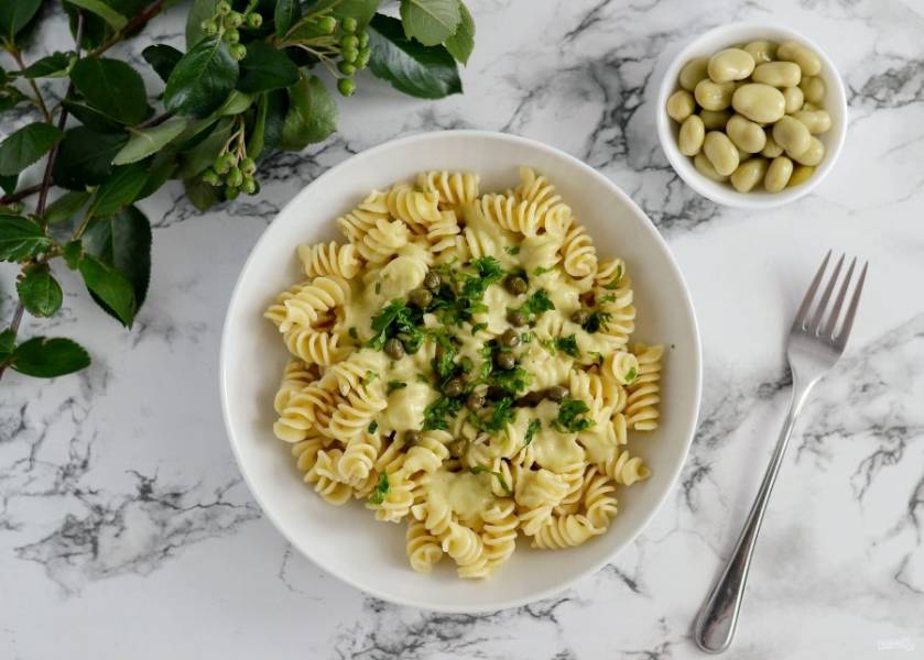 Это простой универсальный соус из садовых бобов. Им можно заправлять овощные салаты, добавлять к макаронам или макать в него начос. Соус получает лёгким, с кремовой консистенцией и очень вкусным.