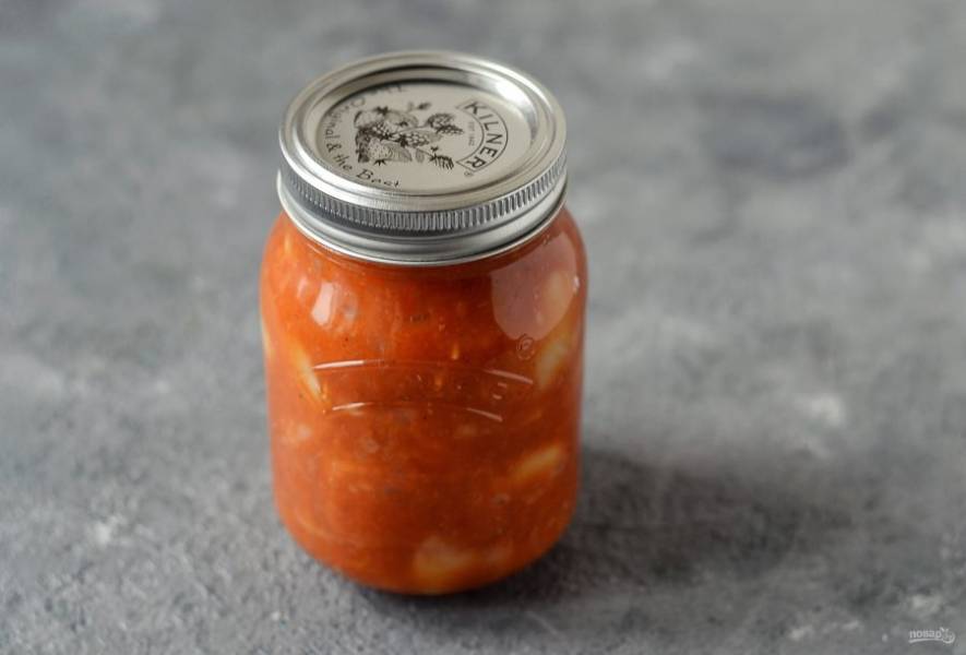 Разложите бобы по заранее стерилизованным баночкам. Закрутите крышкой, переверните верх дном, заверните в полотенце и оставьте так до полного остывания.