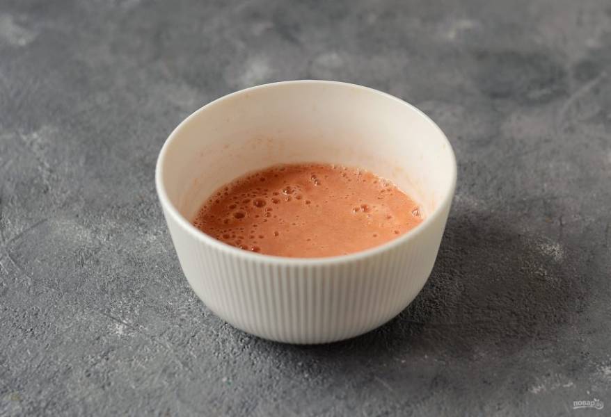 Помидоры обдайте кипятком, очистите от кожицы и измельчите блендером.