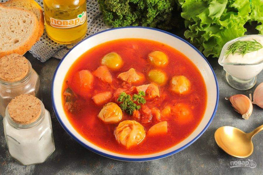 Удивите своих родных ароматным борщом с брюссельской капустой, наверняка они такое блюдо никогда не пробовали. Горячее можно приготовить как с мясом, так и постным, с добавлением других овощей.