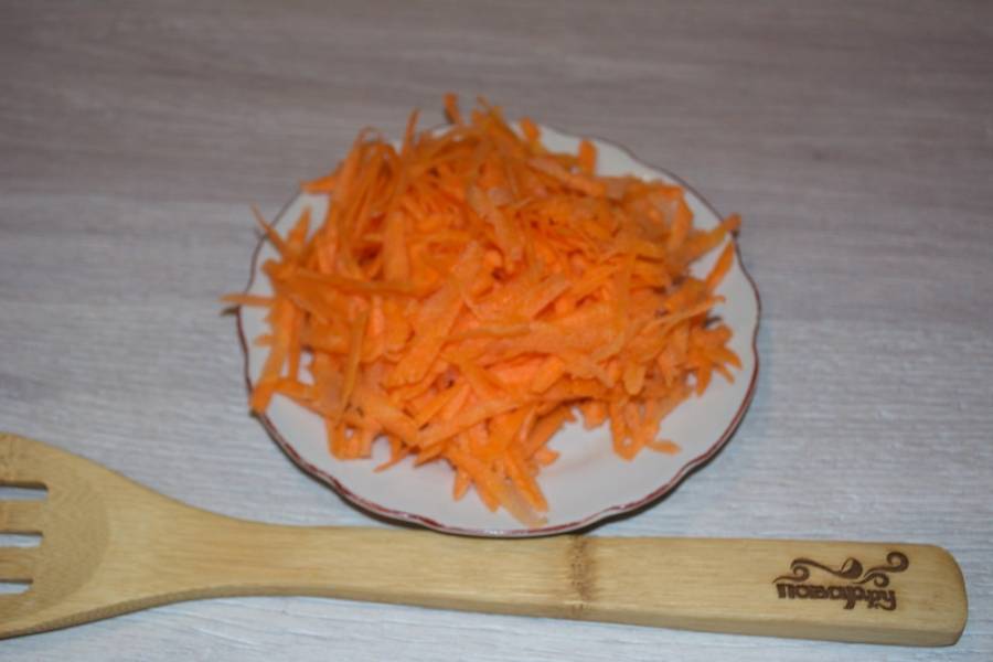 2. Морковь натрите на крупной терке.