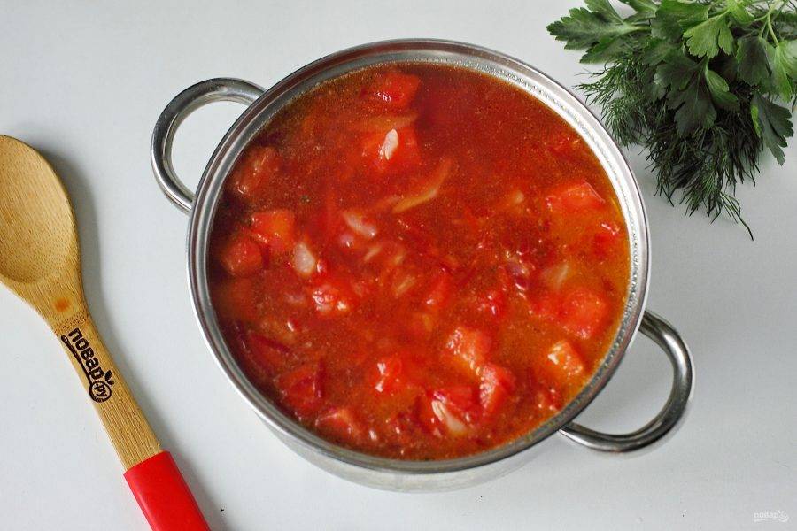 Добавьте содержимое сковороды в кастрюлю и продолжайте варить суп до готовности всех ингредиентов.