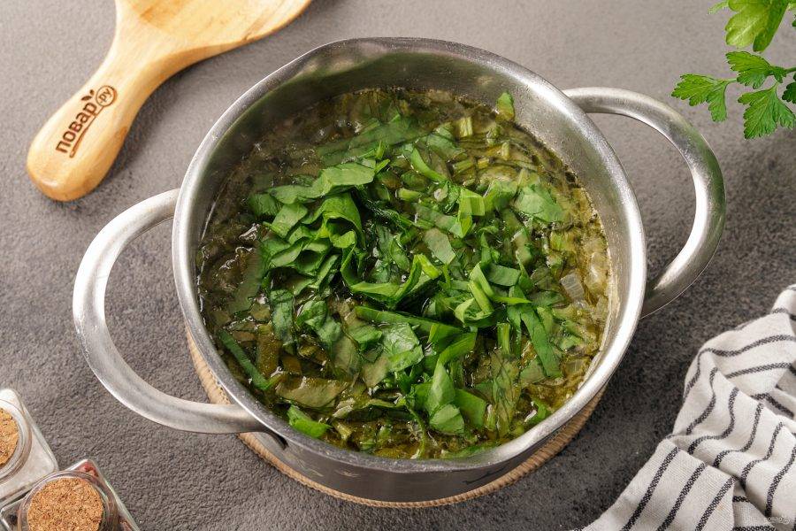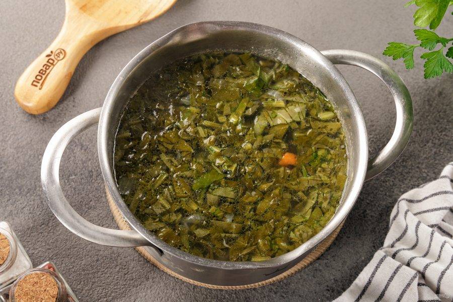 Добавьте щавель. Перемешайте и снимите с плиты.