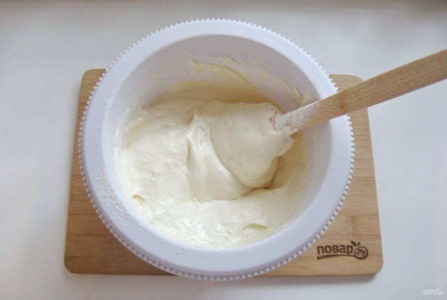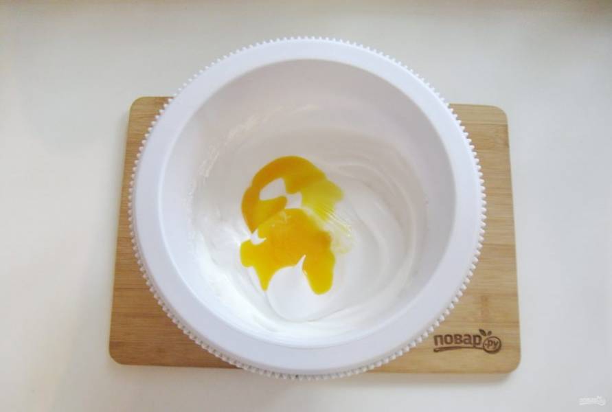 По одному добавьте 4 желтка, каждый раз перемешивая.