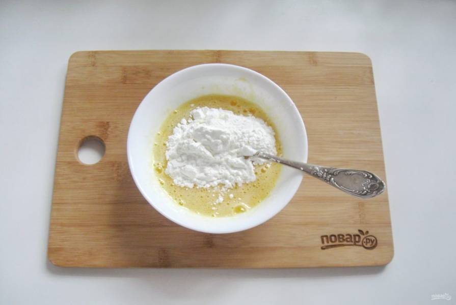 Добавьте крахмал и перемешайте смесь до однородной консистенции.