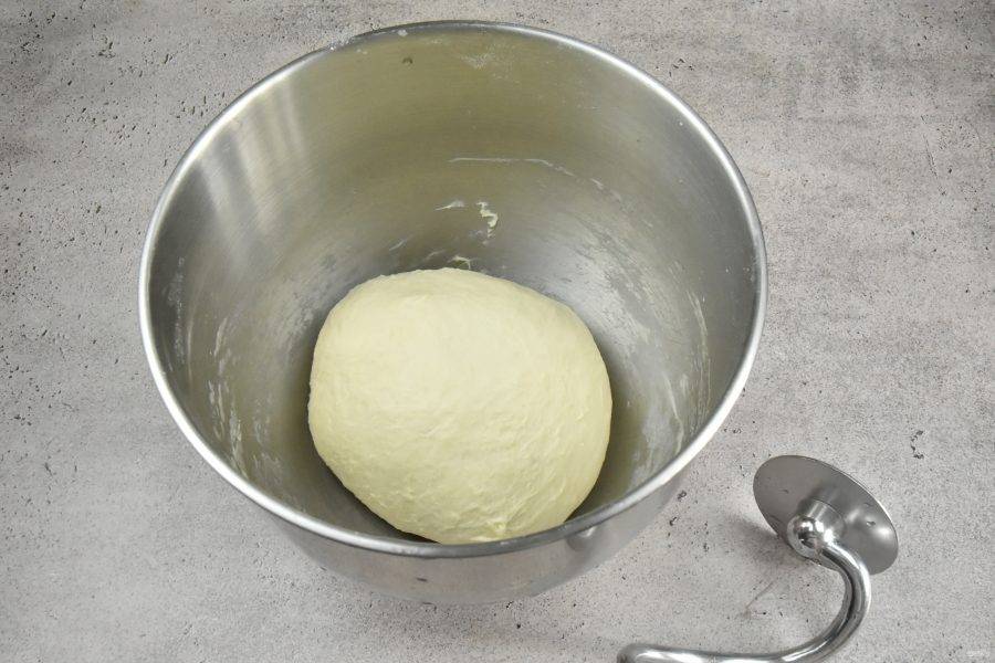 Замесите тесто. Готовое тесто мягкое, эластичное и упругое, не липнет к рукам. По консистенции его можно сравнить с мочкой уха. Соберите тесто в шар, накройте пленкой и оставьте отдохнуть на 20 минут.