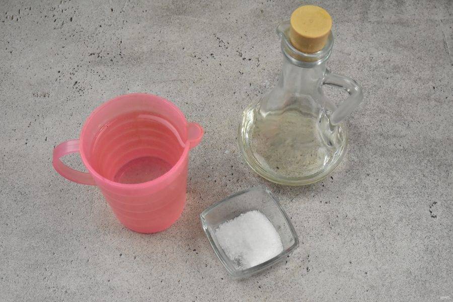 В воде растворите соль и влейте растительное масло. Размешайте.