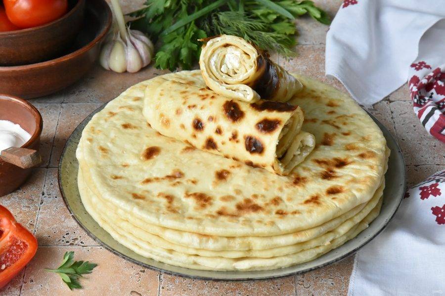 Тонкая мягкая лепешка с творожной начинкой покоряет своим вкусом.
