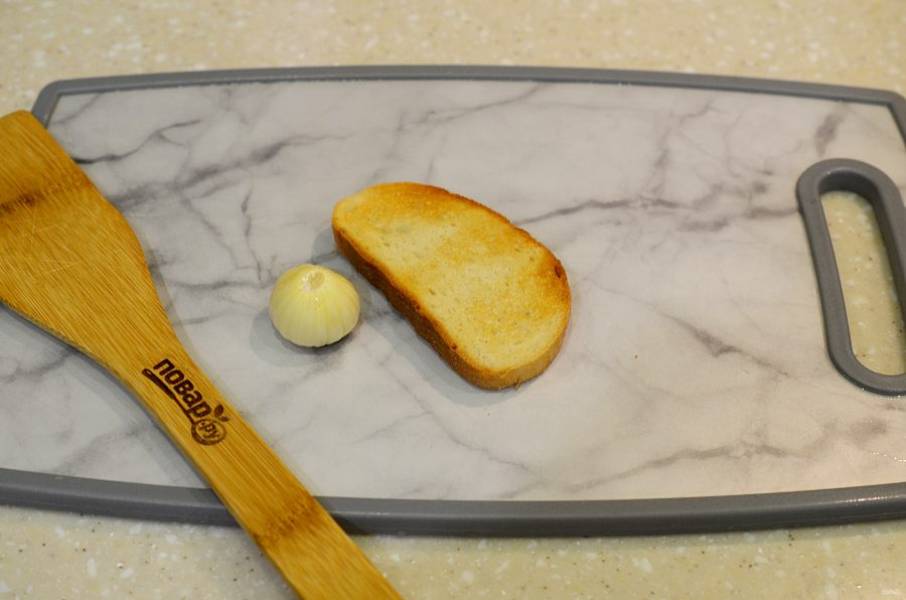 6. Кусочки хлеба обжарьте и натрите чесноком.