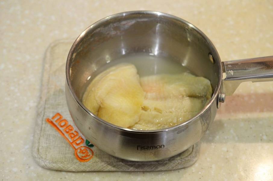 1. Рыбу хорошо отварите в воде с добавлением тимьяна и оливкового масла. Пока рыба не начнет распадаться на хлопья.