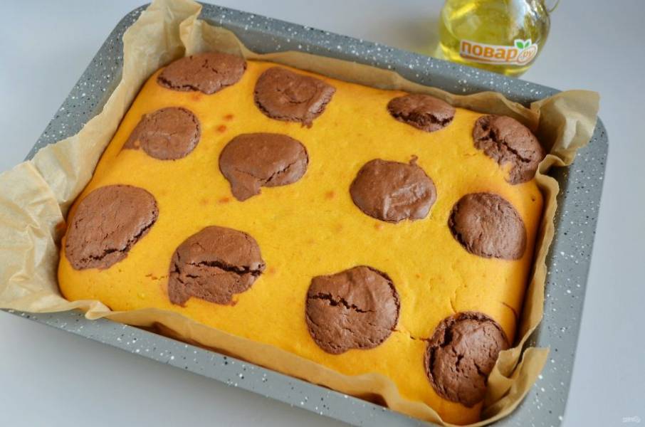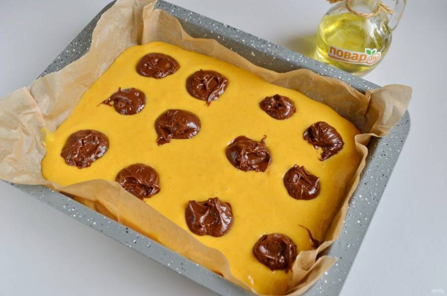 9. Сверху распределите тыквенное тесто.