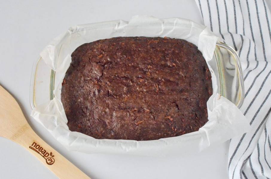 Переложите тесто в форму. Разровняйте. Размер моей формы 15 на 20 см.
