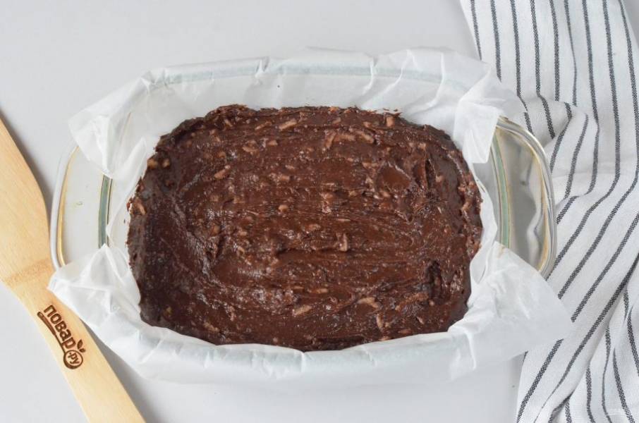 Подготовьте ингредиенты для брауни. Включите духовку на 170 градусов. Форму застелите пергаментом. Приступим!