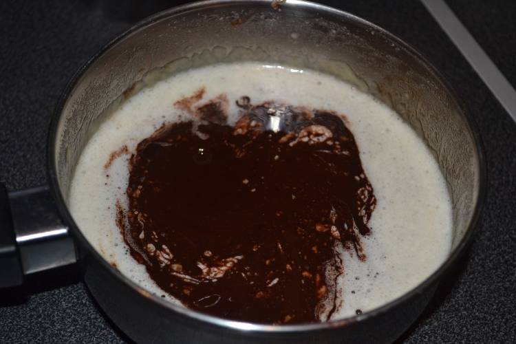 Соедините яичную и шоколадную массы, перемешайте до однородного состояния – шоколадное тесто для брауни готово.