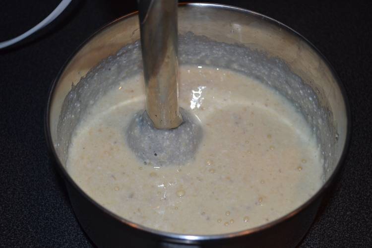 Блендером разотрите до однородного пюре. Банановое тесто готово.