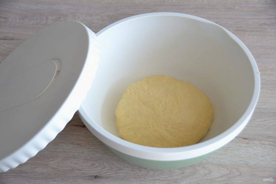 Округлите тесто в шар, накройте крышкой, оставьте для брожения на 1-1,5 часа.