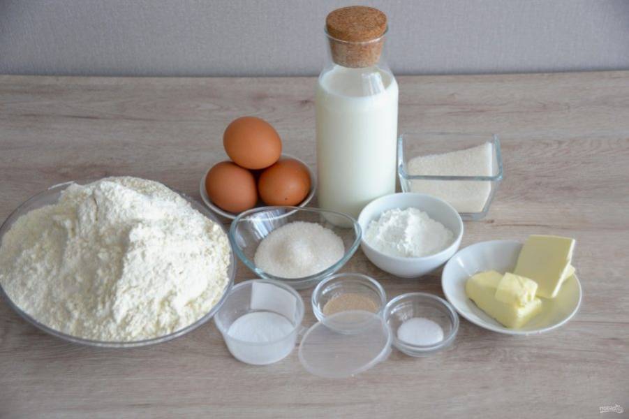 - Молоко 450 мл 150 мл. холодного молока — в крем, 300 мл. теплого молока — в тесто