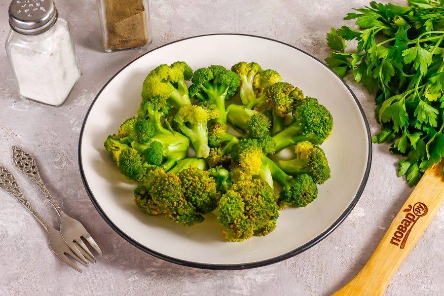 Выложите брокколи на тарелку и подайте к столу теплым или охладите.