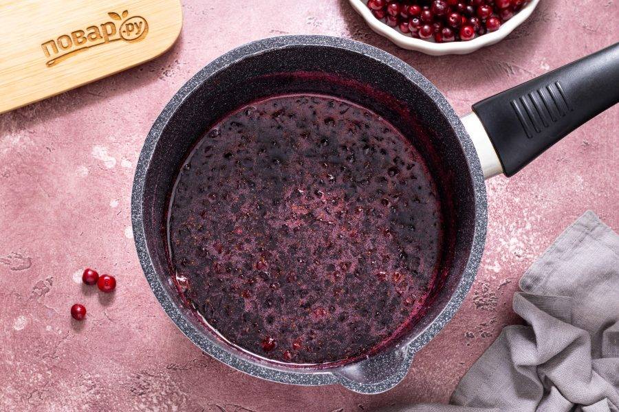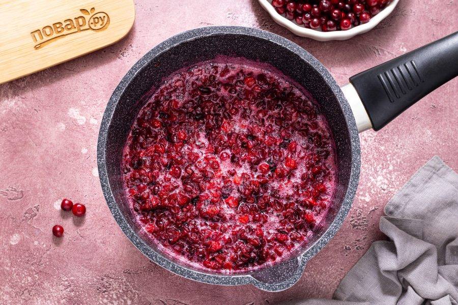Пока готовится сладкий сироп, помойте бруснику и откиньте на сито. Дайте стечь лишней воде.