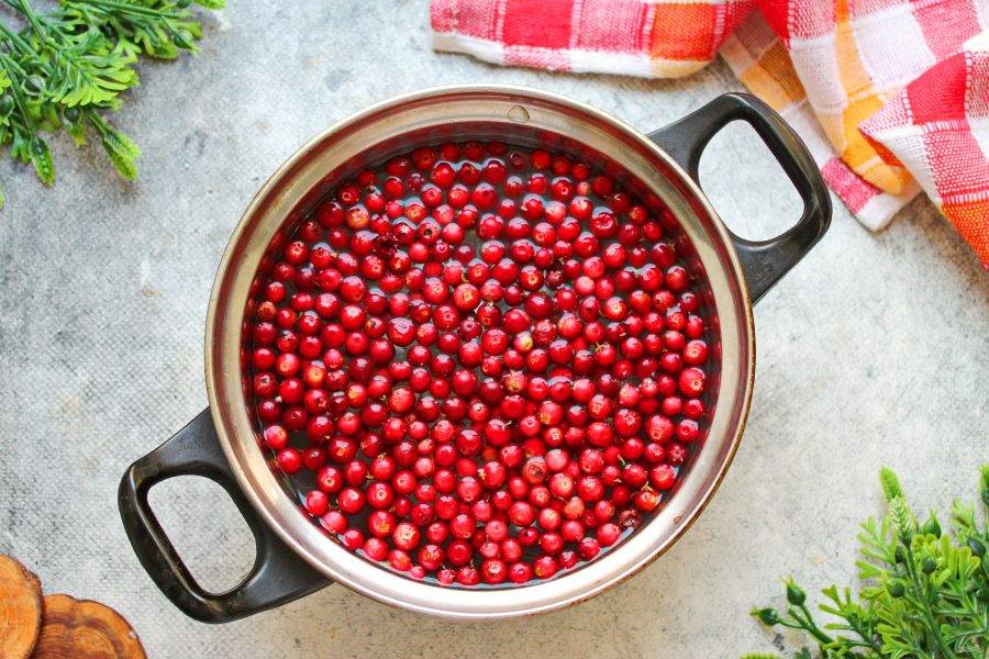 Подготовьте все необходимые ингредиенты для приготовления брусничного компота.