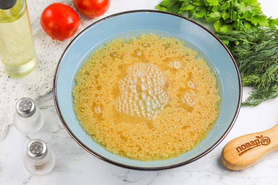 Булгур промойте в воде несколько раз.