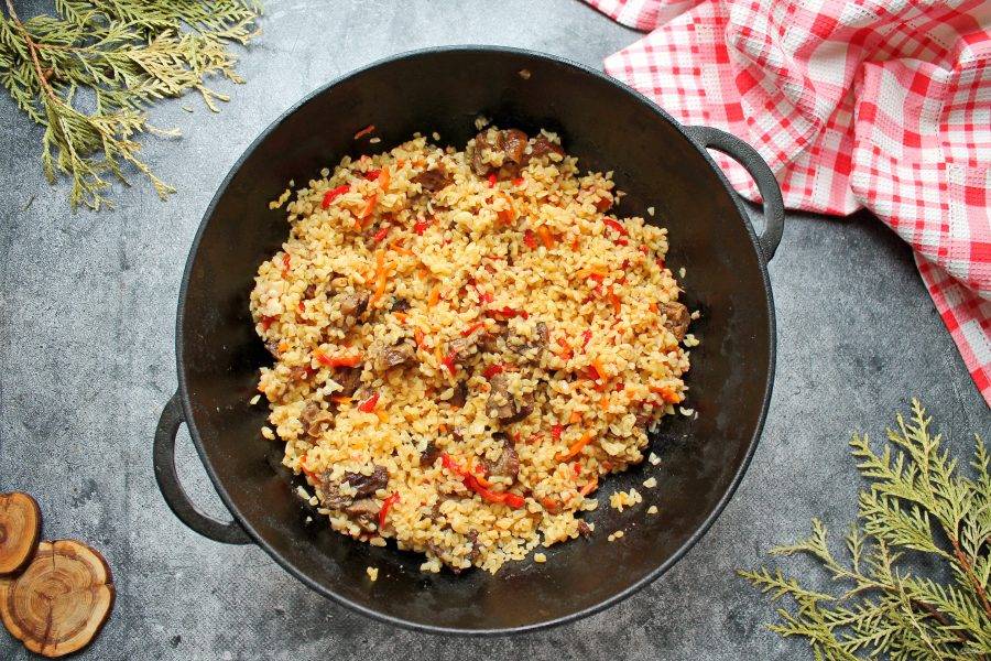 Готовьте булгур в течение 30 минут до готовности и впитывания жидкости. Готовый булгур снимите с огня, дайте постоять 10 минут и подавайте к столу.