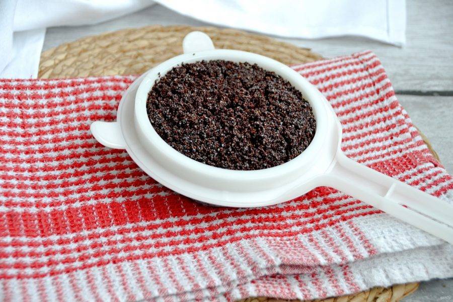 Подсушите мак на салфетке или на полотенце, необходимо избавиться от лишней влаги.