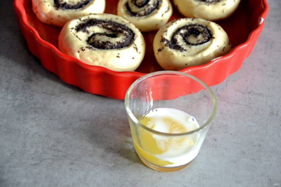 Смажьте булочки перед выпечкой смесью яичного желтка со столовой ложкой молока.