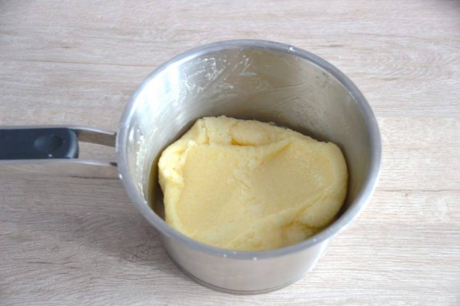 Всыпьте в сотейник крахмал, хорошо размешайте.
