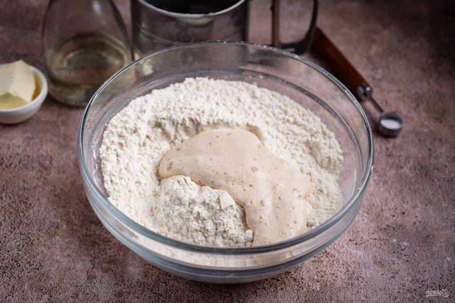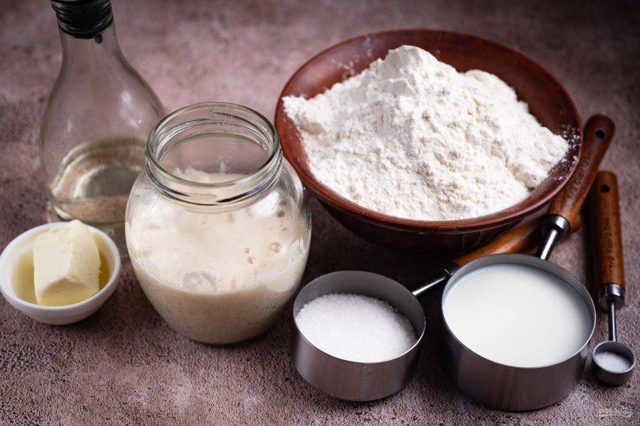 Все ингредиенты перед вами на фото. За 6 часов до начала приготовления подкормите пшеничную закваску.