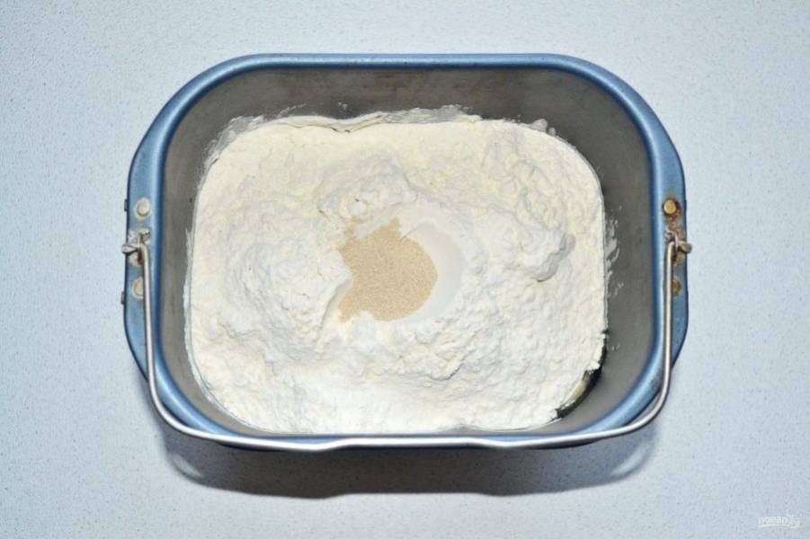 Я делаю тесто в хлебопечке, но можно и замесить вручную. Для этого растворите в теплой воде сахар и дрожжи, после добавьте масло, соль и муку.