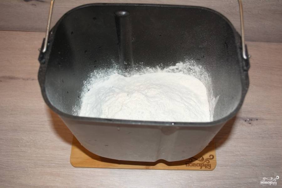 Для приготовления булочек (для замеса теста) я использую хлебопечку (у меня фирмы "Панасоник"). В чашу хлебопечки поместите дрожжи, сахар, соль, просеянную муку, растительное масло и воду. Установите ведерко в хлебопечку, включите прибор.