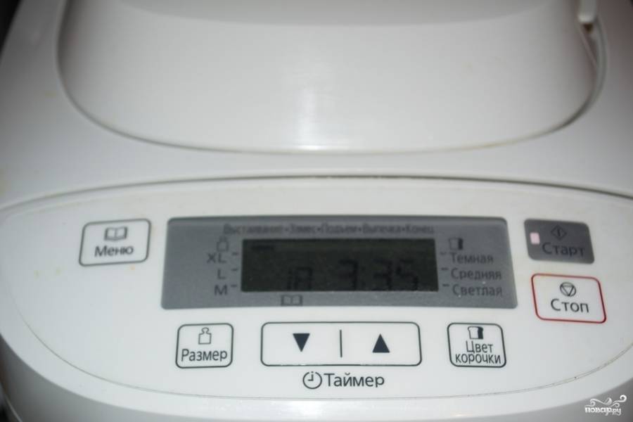 Включите прибор на замес (у меня это 3 часа 25 минут), дождитесь готовности теста.