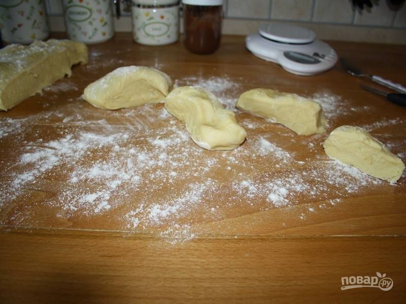 5. Поднявшееся тесто перемесите и разделите на 8 равных частей.