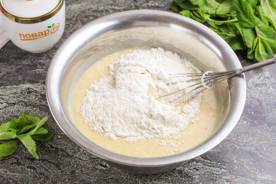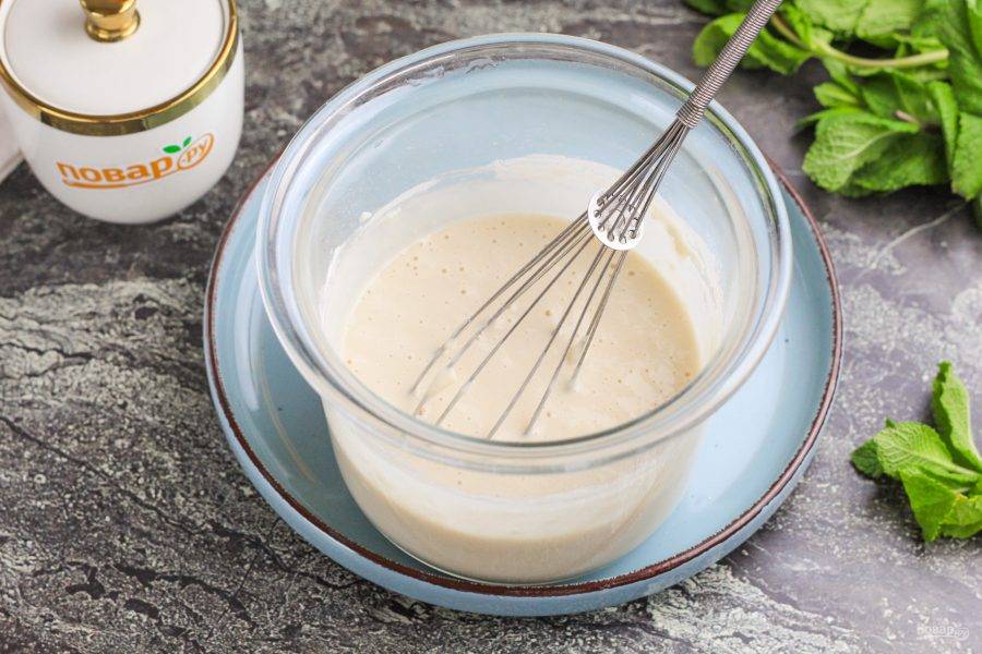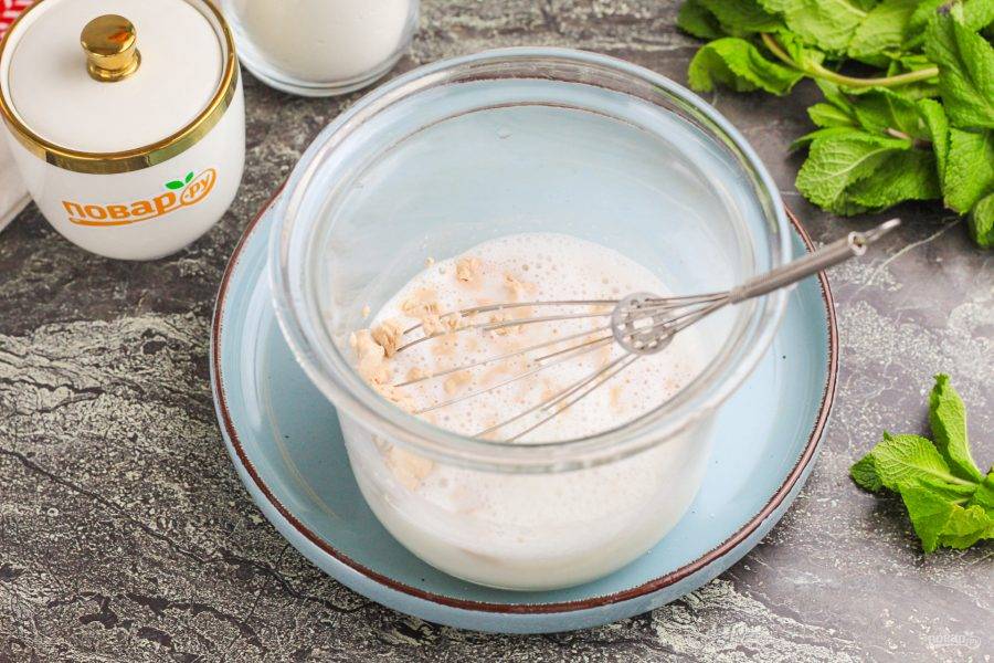Раскрошите свежие дрожжи или всыпьте сухие и тщательно все взбейте, чтобы дрожжи растворились.