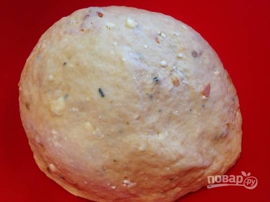 7. Замешиваем гладкое тесто, которое не должно липнуть к рукам. Накрываем тесто полотенцем и ставим в прохладное!! место часа на полтора.