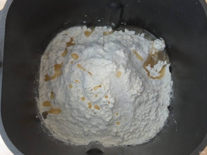 Выберите способ замеса. Если вы замешиваете в хлебопечке: выложите продукты в ведерко, согласно вашей инструкции: молоко с дрожжами, муку, соль, растительное масло. Выставите режим "Тесто". Если замешиваете ручным способом: к молоку с дрожжами добавьте частями муку, соль, масло. В обоих случаях замесите тесто.