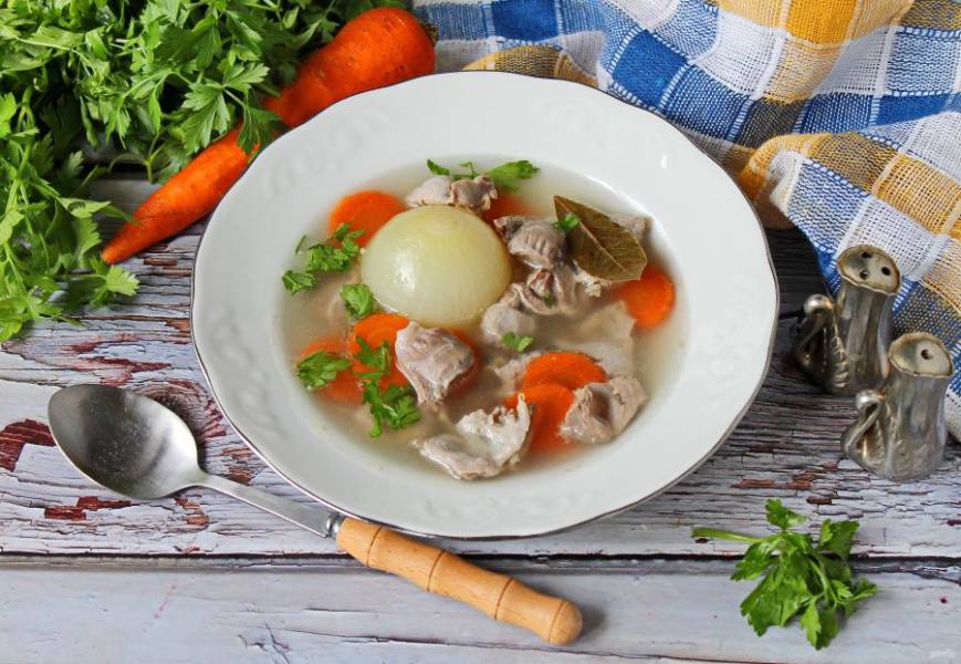 Чтобы приготовить вкусный и ароматный бульон необязательно брать дорогое мясо. Его очень просто и не затратно можно сделать из куриных желудков. Берите рецепт на заметку!