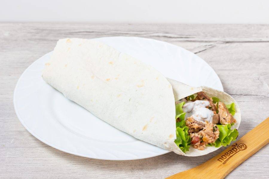 Заверните и сделайте тоже самое с остальными тортильями и начинкой.