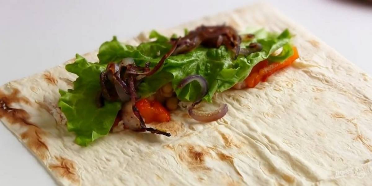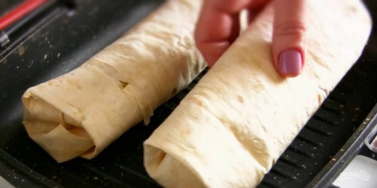 4. Сверните буррито в рулет и слегка поджарьте на гриле (по 30 секунд с каждой стороны). Приятного аппетита!